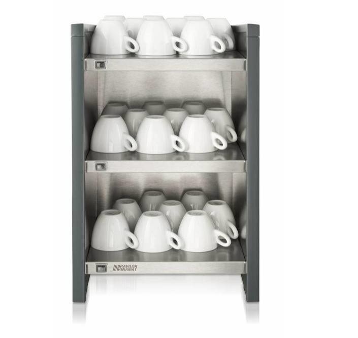 Le WHK est un chauffe-tasse élégant pour les tasses et les tasses à café. Il y a de la place pour environ 120 tasses à café. Chacune des trois couches peut être activée et désactivée séparément. Le chauffe-tasses est en acier inoxydable et disponible en deux couleurs. Convient à toutes les machines à café de Bravilor Bonamat et en particulier aux machines à expresso Esprecious.