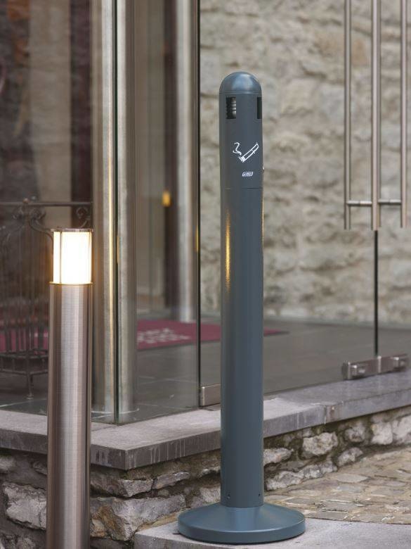 - Réalisé en acier galvanisé, couche époxy; surface inox à éteindre les cigarettes