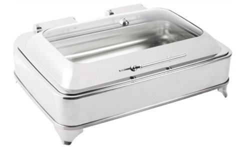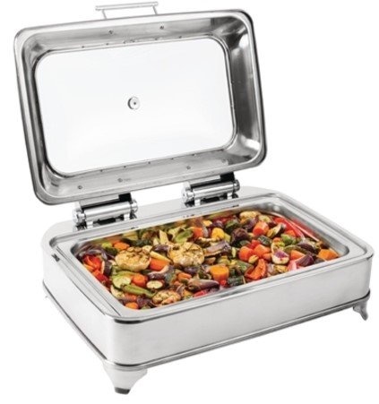 - Le couvercle en verre des chafing dishes électriques permet de présenter les aliments tout en les maintenant couverts.