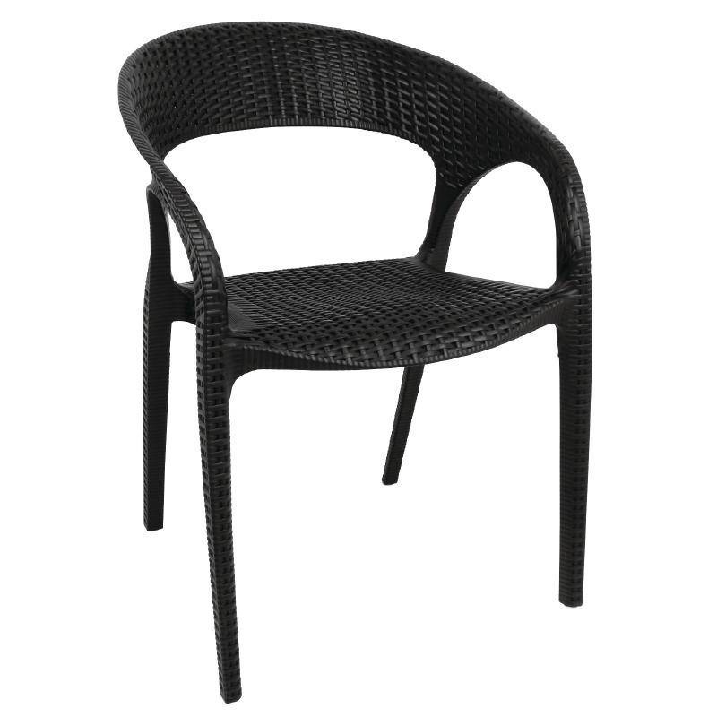 Chaises Enveloppant en Rotin PP Noir | Empilable | Lot de 12