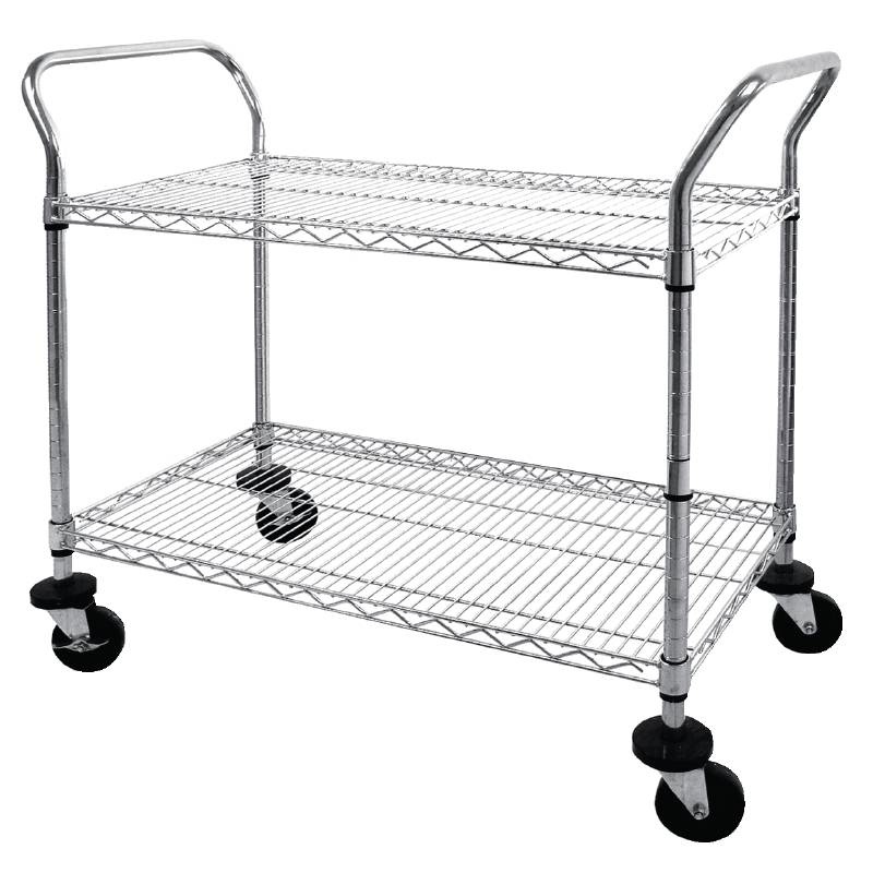 Chariot De Service Inox - Fils Chromés - 2 Plateaux - 910x460x960(h)mm