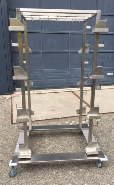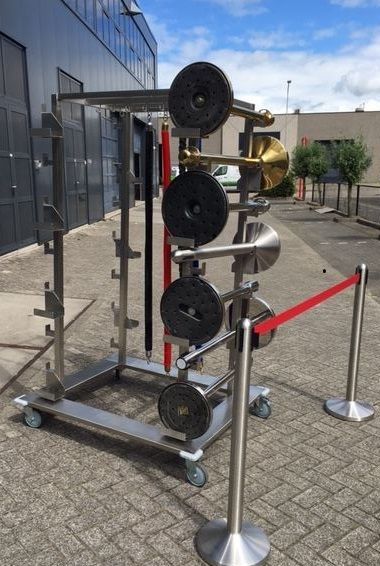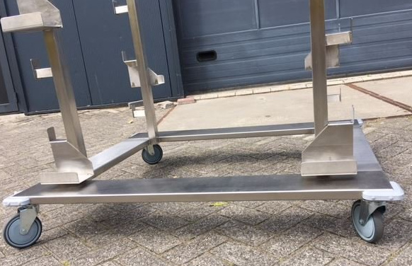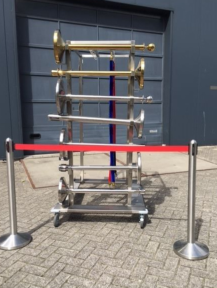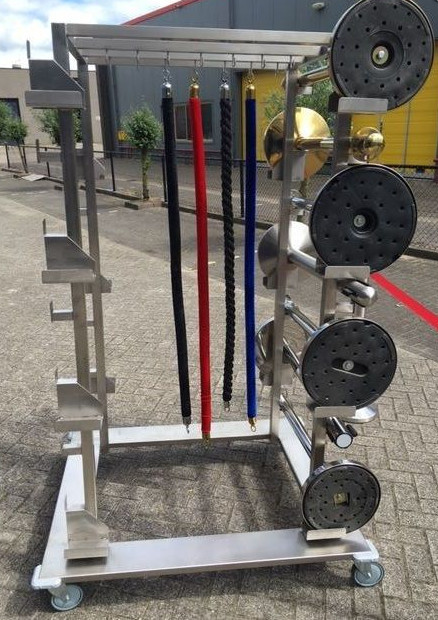 Chariot de transport pour au maximum 14 piliers avec 14 cordes. Vous pouvez facilement ranger les piliers. Le chariot est réalisé en INOX Usage Intensif. Ce chariot de transport a 4 roues dont 2 avec frein. Spécifications: