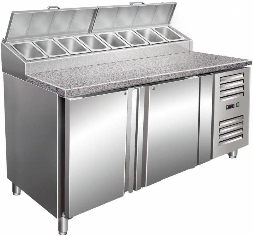 Comptoir à Pizza 8x 1/3GN | Plan de Travail Granit | 2 Portes | 1500x850x1080-1140(h)mm
