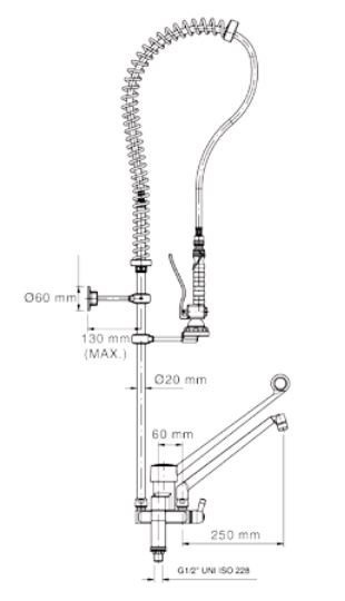 Douchette de Prélavage - 17 Litres p/m - Bi Trous - Raccords Flexibles - (H)1260mm