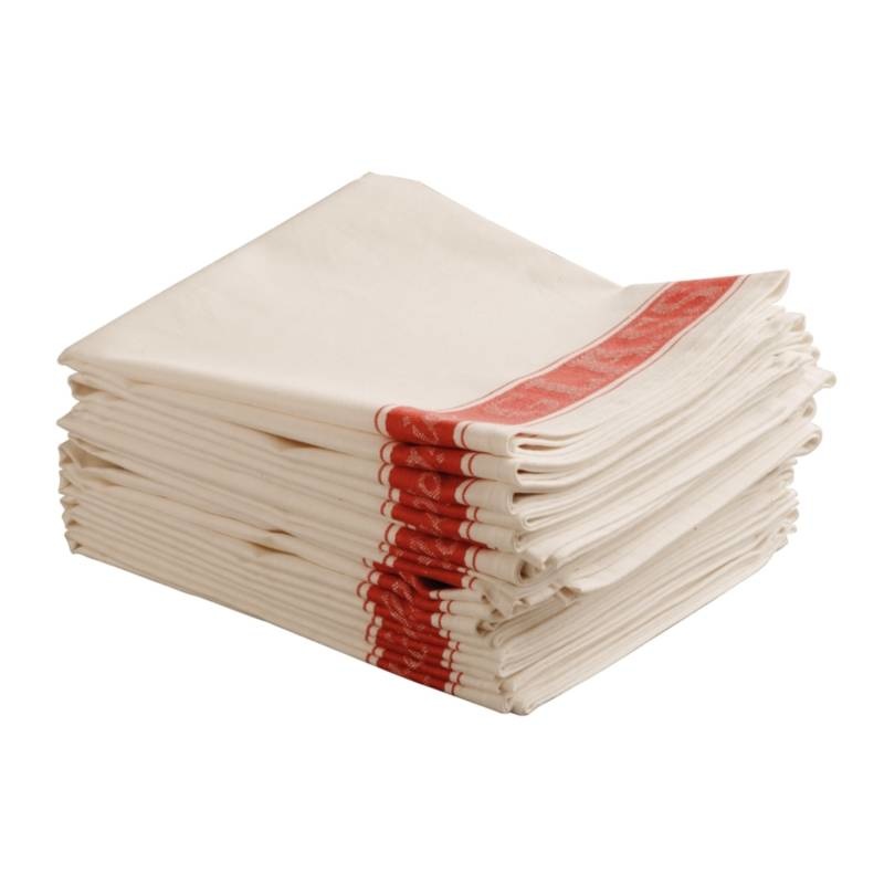 Essuie-Verres Avec Bordure Rouge - Toile Lin - Par Pièce