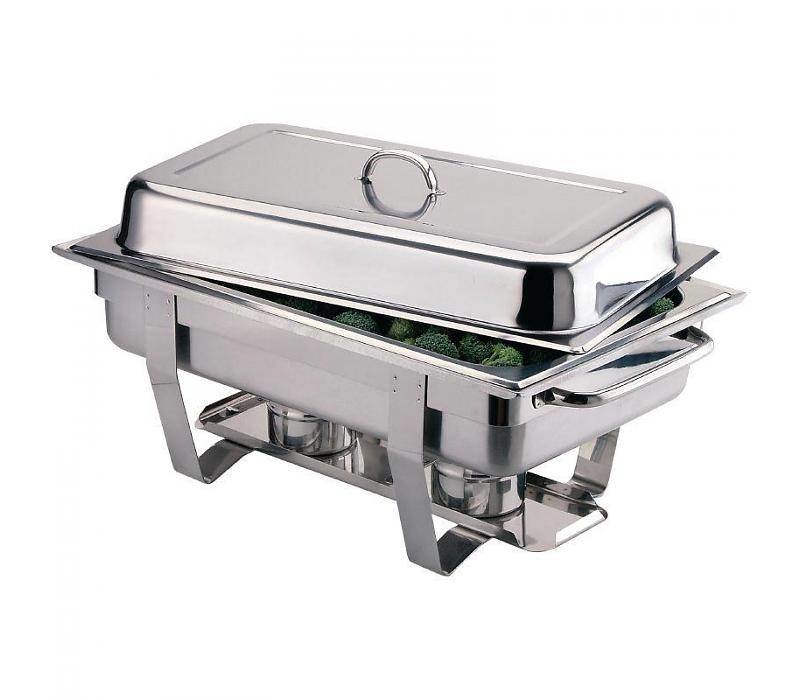 Un lot de 4 Chafing dishes GN 1/1 en acier inoxydable 18/8 avec une finition miroir poli. Chaque chafing dish se compose d'un bac à eau, bac alimentaire 9 litres, couvercle et deux supports combustible. Vous recevrez donc 4 chafing dishes complets.