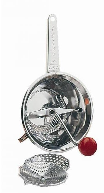 En acier inoxydable de qualité. Pour mouliner les fruits, la viande et les légumes pour les soupes. Livré avec 3 disques interchangeables pour des préparations aux textures différentes.