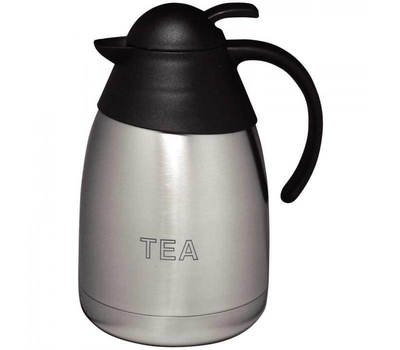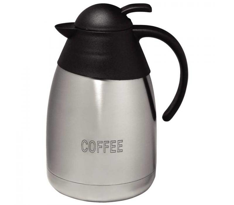 Pichet isotherme de 1,5 litres avec une étiquette. Double paroi en acier inoxydable permettant une excellente rétention de la chaleur.