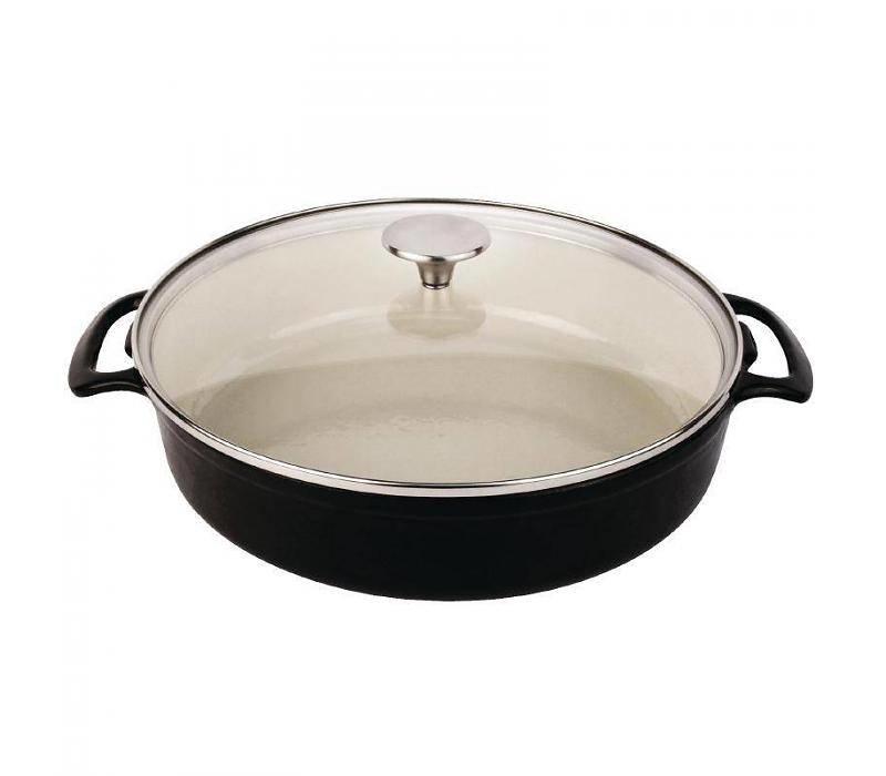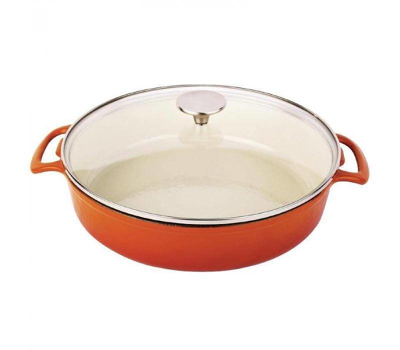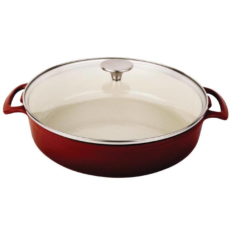 Fabriqué à partir de fonte de haute qualité pour une excellente conduction et rétention de la chaleur Compatible tous feuxAnti-adhésif et anti-rouille après culottage correctement effectuéLes poignées intégrées apportent une solidité accrueCouvercl een verre transparentBouton en acier inoxydableLes mesures données correspondent à l'intérieurAuto-arrosageIntérieur émailléCapacité 3.5LDimensions 70(H)x 280(Ø)Extérieur rouge attractifCapacité 3.5LDimensions 70(H) x 280(Ø)mm- Fabriqué à partir de fonte de haute qualité pour une excellente conduction et rétention de la chaleur