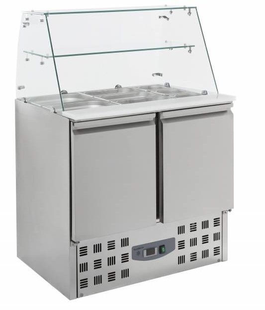 Saladette Inox | 2 Portes | Vitrine en Verre | 2,4kW | 900x700x850(h)mm