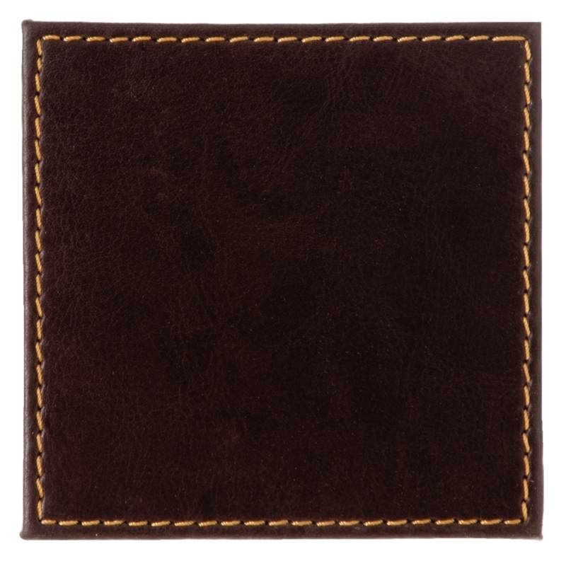 Lot de quatre dessous de verres carrés en simili cuir, pour une mise en place élégante et sophistiquée. Résiste à une chaleur maximale de 70°C.