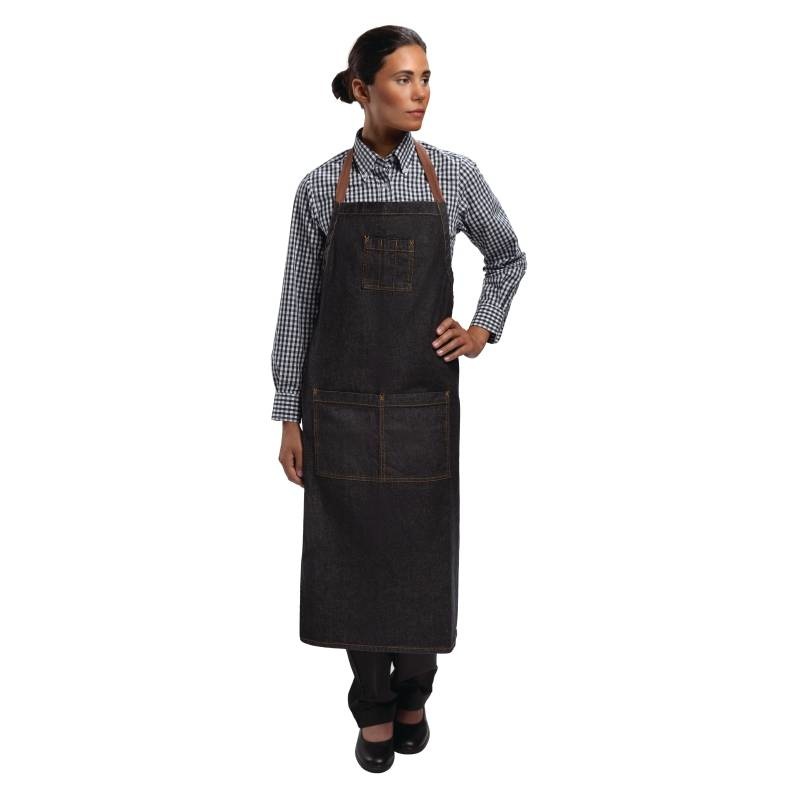 Le tablier bavette Memphis allie le style de la rue à la fonctionnalité. 100% coton denim, ce tablier est conçu pour résister à une activité professionnelle intensive. Egalement disponible en indigo.