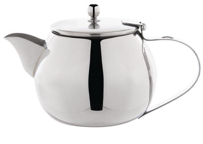 Théière anti-goutte en acier inoxydable garantissant un écoulement sans éclaboussure à chaque utilisation. Modèle classique avec une charnière extrêmement résistante.