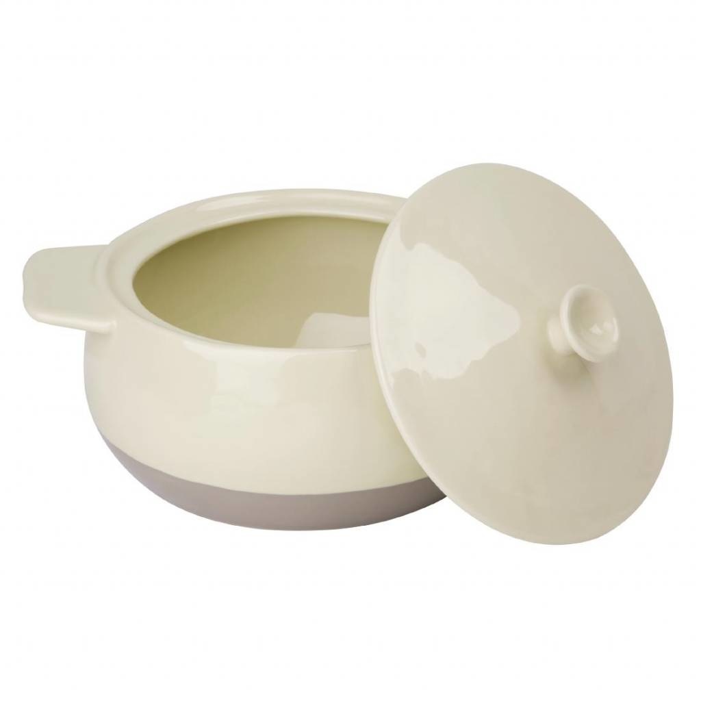 Faites cuire vos petits plats mijotés avec amour et style grâce à cette cocotte robuste. En grès robuste et fiable, cet essentiel de cuisine abordable vous offrira ses services pendant de nombreuses années. Le grès est idéal pour une répartition uniforme de la chaleur, ce qui signifie que ce plat est également parfait pour la cuisson lente. Le style bicolore crème et taupe en fait un plat élégant du four à la table. Compatible four, micro-ondes et lave-vaisselle. Couvercle avec poignée facile à saisir et oreilles rondes pour une parfaite prise en main, même avec des gants.