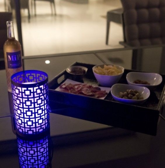 lumière et personnalisez votre éclairage ! Sur batterie, elle se recharge par induction ! Faites votre choix à l’aide de la télécommande : lumière multicolore fixe ou changeante à l’intérieur d’un photophore métallique.