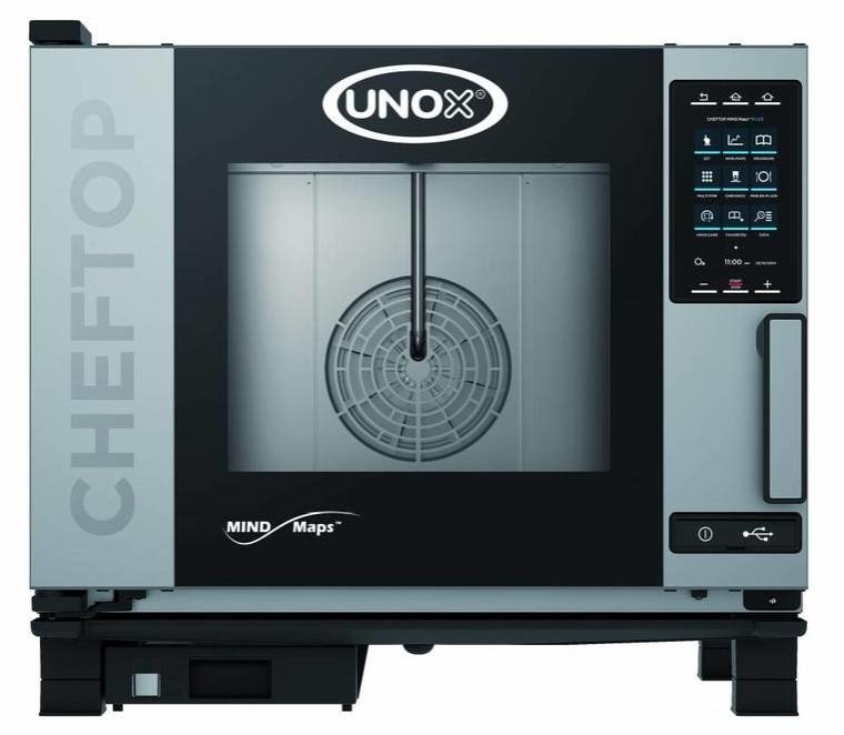 Four mixte électrique "Plus Electric" XEVC-0511-EPR de la marque Unox, adapté pour 5 x GN 1/1. Ce four combiné a une porte qui s'ouvre à gauche. Tirez parti de la technologie MIND.Maps: capturez des processus de cuisson élaborés à partir d'un nombre infini d'étapes en un seul mouvement. Enregistrez jusqu'à 256 programmes utilisateur et noms de recettes. Cette machine est équipée d’un bac collecteur avec égouttage continu, même lorsque la porte est ouverte. Et il y a plus! Nous vous conseillons d'acheter un kit d'installation + un adoucisseur d'eau lors de l'achat de ce produit.
