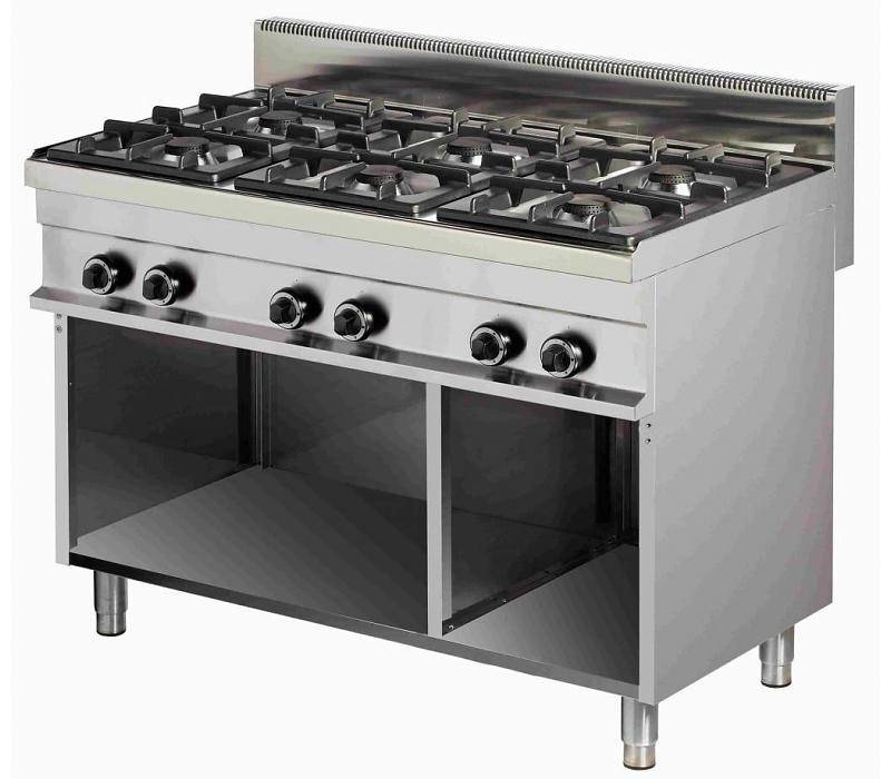 Cuisinière 6 Feux | Soubassement Ouverte | 6x 6kW | 1200x700x900(h)mm
