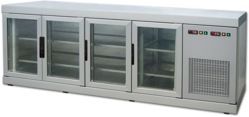 Comptoir | INOX | 4 Portes Vitrées (avant-arrière) | +10°/-5° ; +5°/-25°C | 2220x550x(h)885mm