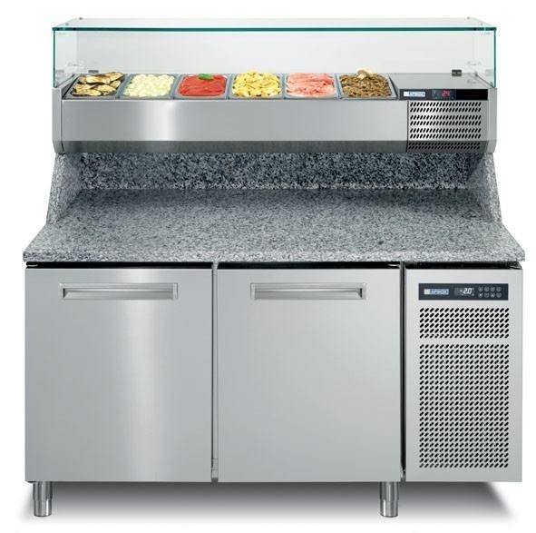 Comptoir Pizza | INOX | 2 Portes | PIZZASPRING 820 I | Af| INOX | 145x80x(H)104cm