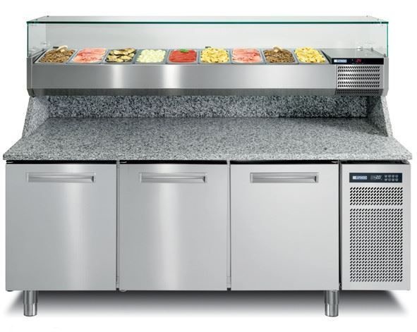 Comptoir Pizza | INOX | 3 Portes | PIZZASPRING 830 I | Af| INOX | 200,5x80x(H)104cm