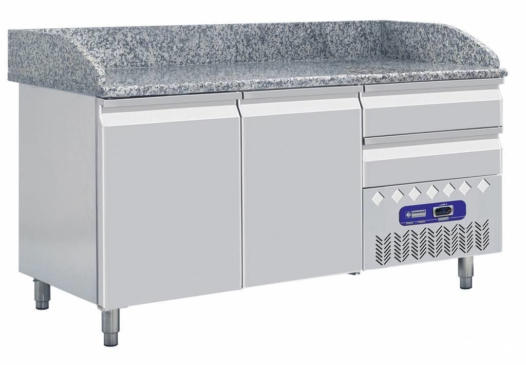Comptoir Réfrégirateur | 2 portes 600x400 | 2 tiroirs neutres | 160x72x109cm | Plan de travail marbré