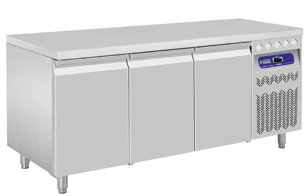 Comptoir Réfrigéré Ventilé | INOX | 3 Portes GN 1/1 | 405 Litres | 1755x700x850/900(h)mm