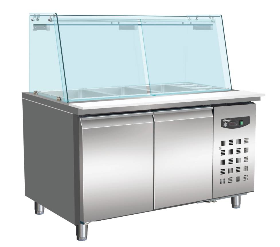 Comptoir Réfrigéré avec Vitrine | 2x 600x400mm | 2 Portes | 1510x800x(H)1365mm