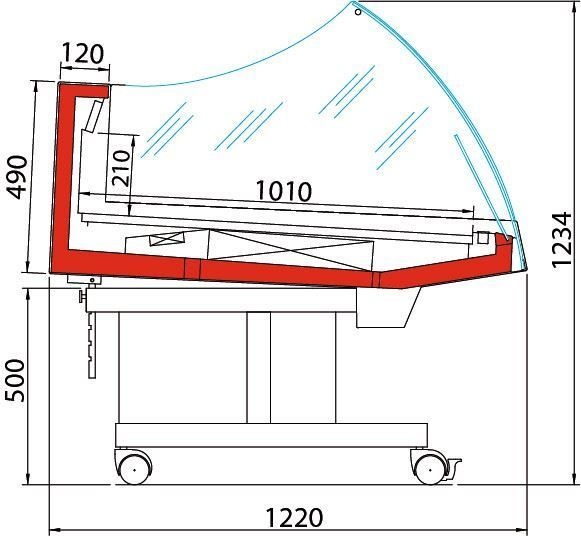 Comptoir Réfrigéré avec Vitrine | 4 Roues | 1288x1220x(h1030mm