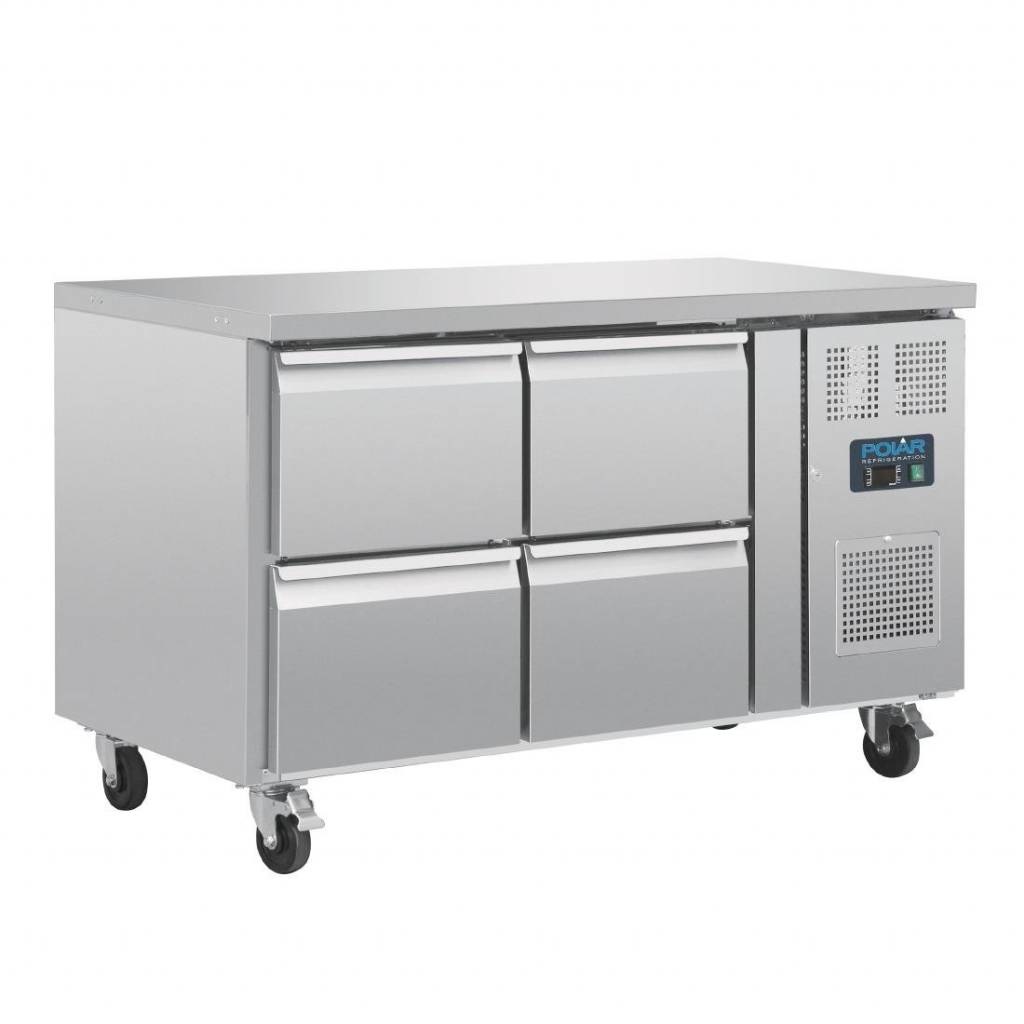 Comptoir Réfrigéré Inox sur Roulettes | 4 Tiroirs | 1360x700x(h)860mm