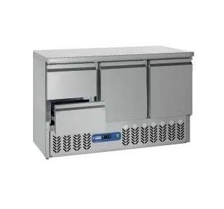 Comptoir Réfrigérée inox | 2 Portes et 2 tiroirs | 1365x700x(h)857/890mm | DELUXE