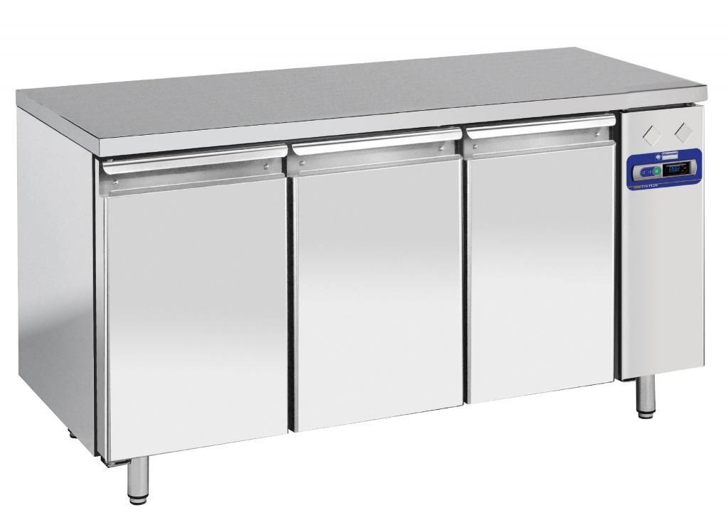 Comptoir Réfrigérée Ventilée | INOX | 3 portes GN 1/1 | sans groupe | 1596x700x(h)880/900mm | 405 Litres | DELUXE