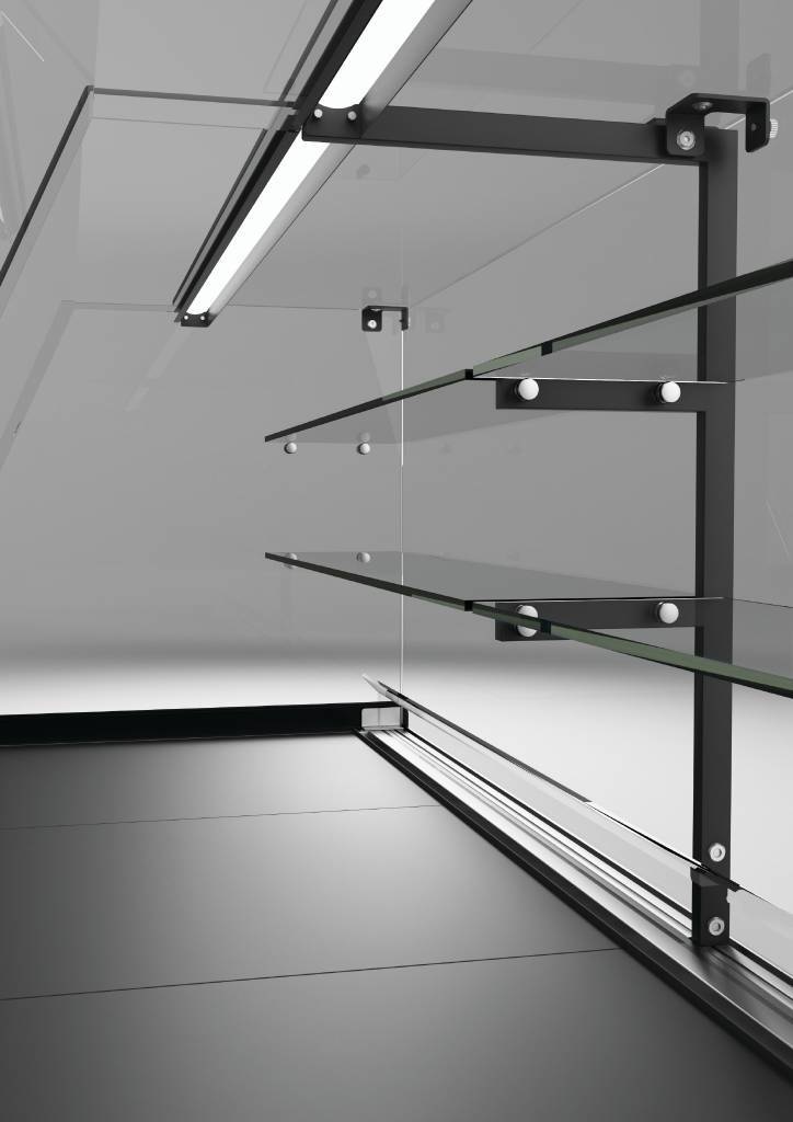Accouplables pour une configuration flexible (moyennant un kit d'assemblage). Innombrable possibilité de personnalisation, vitres basses ou vitres hautes, choix des matériaux de la tablette de travail, couleur des joues latérales et du fronton, ainsi que de la plinthe et de la moulure décorative en aluminium (avec en option la possibilité d'y intégrer un éclairage LED), couleur des plateaux d'exposition (anthracite, blanc ou acier inox). Évaporateur traité, dispositif d'auto évaporation des condensats, lumière LED, système antibuée intégré...... Sur demande: Éléments neutres ou caisse, éléments angulaires 90° et 45°, aussi bien ouverts que fermés, disponibles aussi en version brute (sans panneau décoratif frontal, sans joues, plinthes ....)