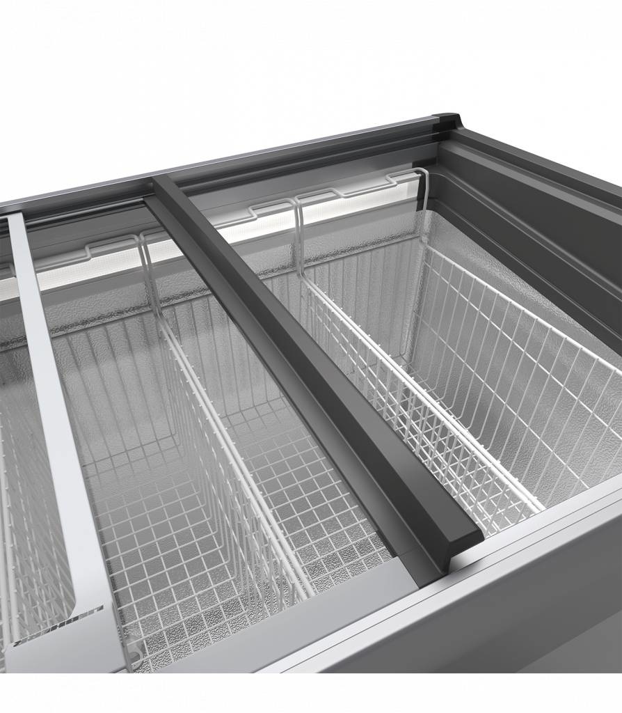 Le modèle Liebherr GTI 1753 est un conservateur à glace, avec une plage de température de -10 °C à -24°C et un éclairage LED sur toute la largeur intérieure. Toujours un bon aperçu et un accès rapide à l'aide des couvercles coulissants en verre trempé et facile à déplacer grâce aux 4 doubles roulettes pivotantes. Des paniers suspendus et un verrou sont disponibles en accessoire.