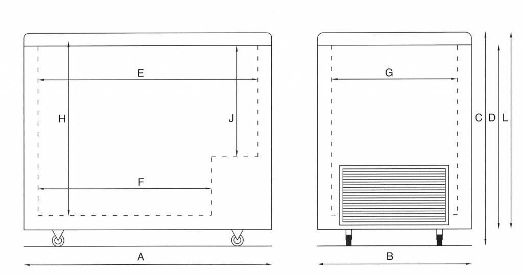 Boîtes de congélation avec couvercles coulissants en verre avec jeu de roulettes pivotantes et serrure robuste. L'épaisseur d'isolation des murs est de 60 mm. Grâce aux couvercles coulissants, il est toujours possible d'ouvrir et de fermer la boîte même après l'avoir ouverte peu de temps avant. Le CSG peut, entre autres, être utilisé pour la présentation et la vente d'aliments congelés, de produits à base de crème glacée et d'aliments pour animaux. À l'aide de diverses options, il est possible de convertir la boîte en une seule version de crème glacée. A cette fin, une superstructure est disponible et des conteneurs spéciaux pour les packs de glace de 5 et 2,5 litres.