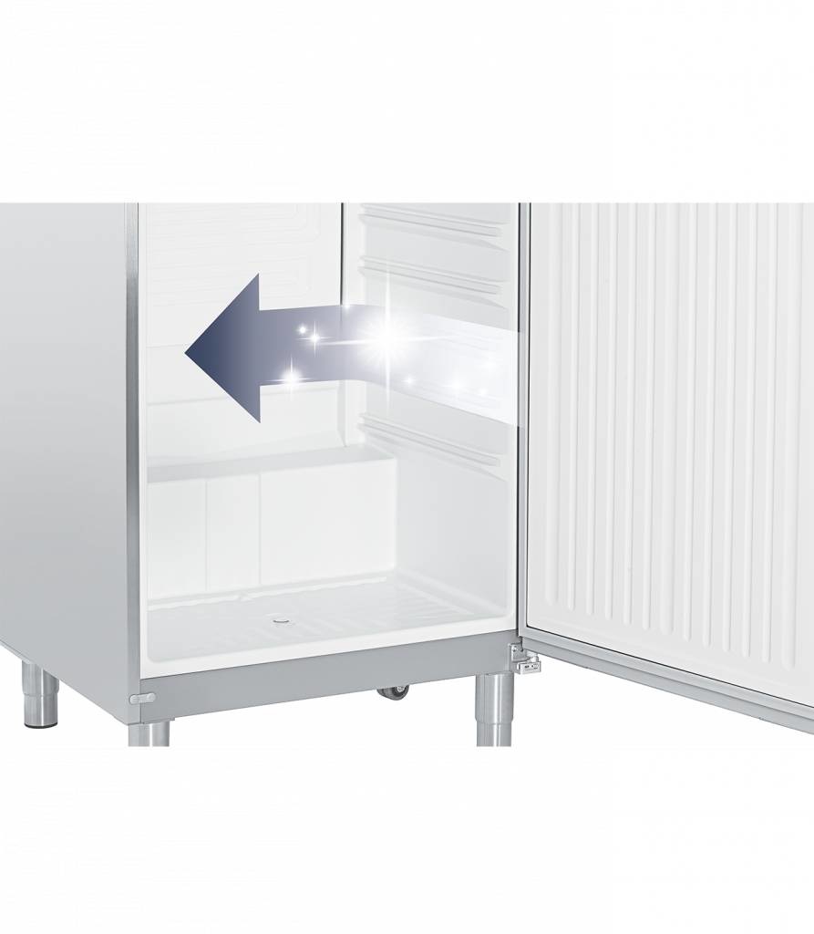 Le modèle Liebherr GGv 5810 est un congélateur NoFrost GN1/1 peu énergivore. La température est réglable au degré près entre -14 °C et -28 °C. Les grilles de support sont réglables à différentes hauteurs et la porte à fermeture automatique a un verrou. Le gaz chaud permet un dégivrage rapide et automatique.