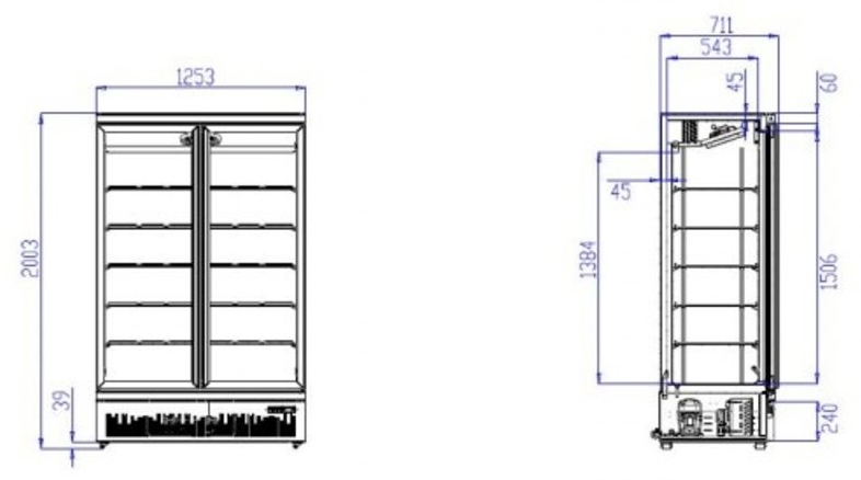 Congélateur Noir | 2 Portes en Verre | 1000 Litres | Sur Roues | 1253x710x (H)1997mm