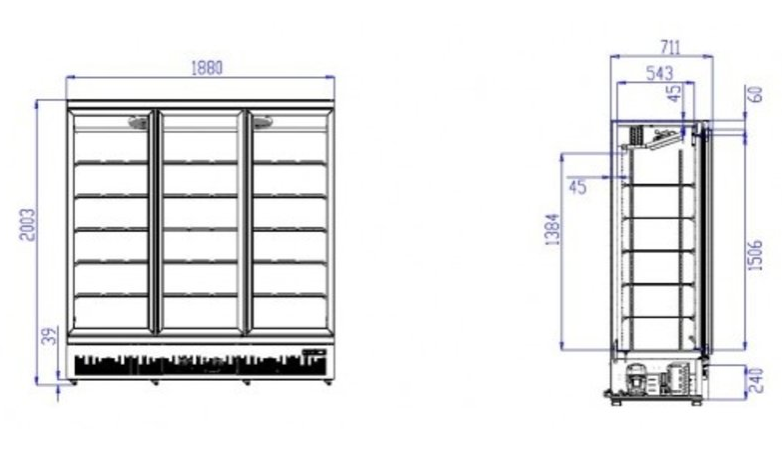 Congélateur Noir | 3 Portes en Verre | 1530 Litres | Sur Roues | 1760x710x (H)1997mm