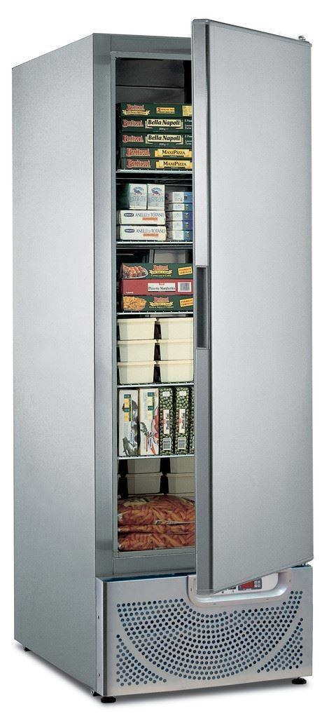 - Congélateur en acier inoxydable avec porte droite fermée, 5 grilles réglables 2/1 GN + rails et serrure.