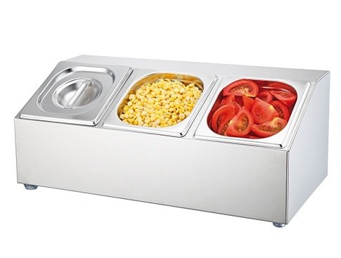 en acier inoxydable 18/8, acier est livré complet avec couvercles et 3 bacs 1/6GN de inox, 10cm de profondeur