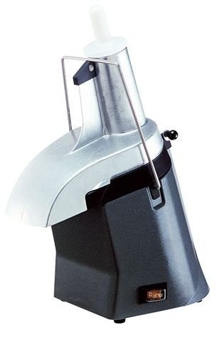 fonte d'aluminium, coupe, râpe, émince, effile tous légumes, tranches, bâtonnets etc. la partie supérieure escamotable (aussi amovible) rend plus facile le nettoyage rapide de la machine, systèmes de sécurité divers, témoin lumineux, avec une trancheur 3mm, râpe 3mm et un trancheur bâtons 8x8 mm