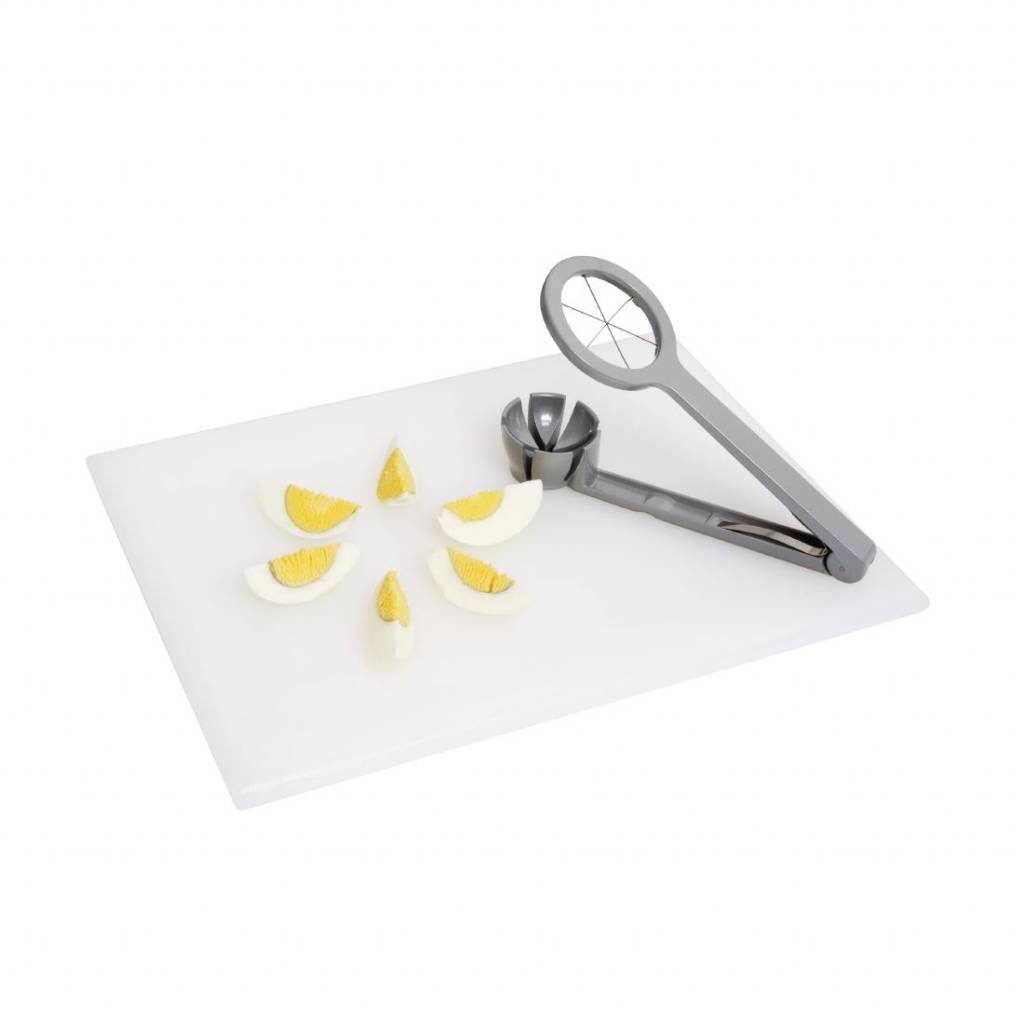 Cet ustensile coupe vos oeufs durs en 6 quartiers égaux en quelques secondes, ce qui vous permet de gagner du temps ! Durable et facile à nettoyer. Possède un clip pour maintenir les poignées ensemble et faciliter le rangement