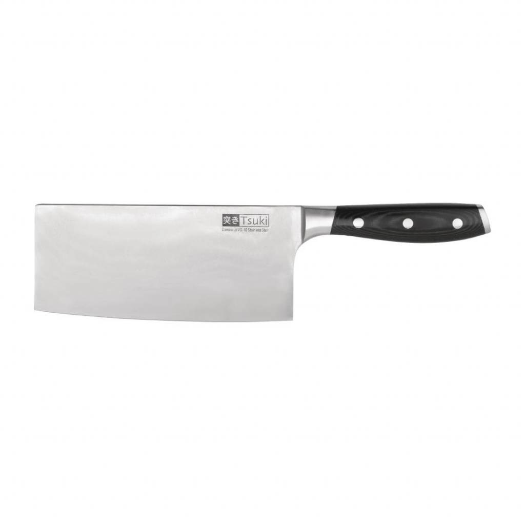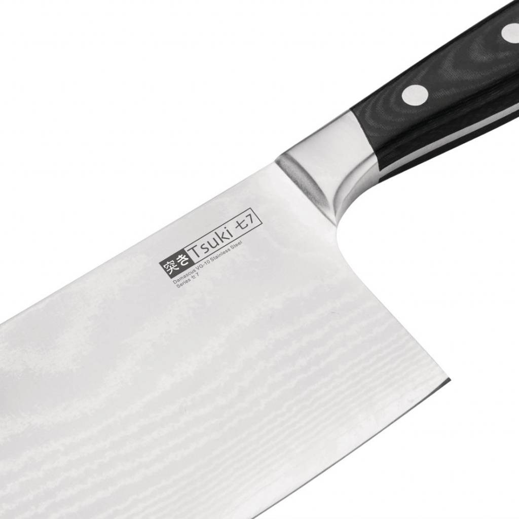 Ce couperet japonais classique VG-10 se caractérise par une base en acier inoxydable trempé indice Rockwell 60°, offrant une excellente qualité de coupe longue durée. Deux couches d'acier Damas recouvrent la base pour la protéger contre la corrosion. Le manche ergonomique en micarta offre une excellente prise en main.