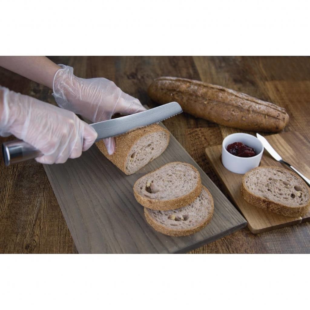Ce couteau à pain japonais classique VG-10 se caractérise par une base en acier inoxydable trempé indice Rockwell 60°, offrant une excellente qualité de coupe longue durée. Deux couches d'acier Damas recouvrent la base pour la protéger contre la corrosion. Le manche ergonomique en micarta offre une excellente adhérence.