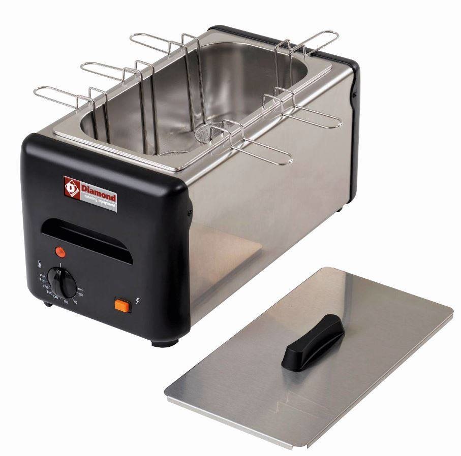 Cuve GN 1/3, livré avec 6 paniers spécifiques, numérotés.Poignées latérales athermiques et couvercle inox.