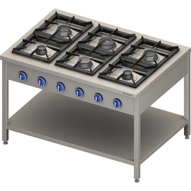 Cuisinière à Gaz | 6 Brûleurs | avec Etagère | 1300x900x(h)850mm | 32,5 kW | G30