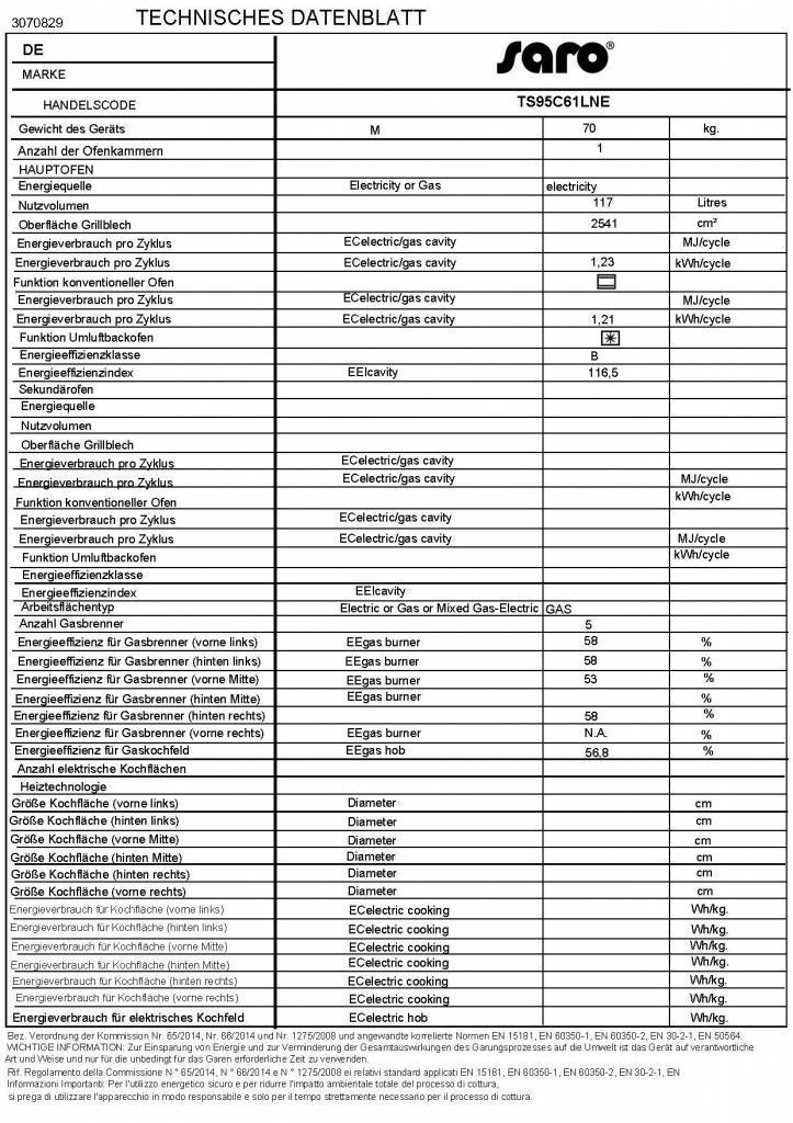 • 5 brûleurs à gaz: 1 x 1 kW, 2 x 1,75 kW, 1 x 3 kL et 1 x brûleur wok 4,25 kW