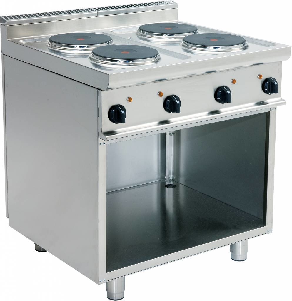 Cuisinière Electrique | 4 Plaques | Soubassement Ouvert | 4 x 2,6 KW | Inox | 400V | 800x700x(h)850mm