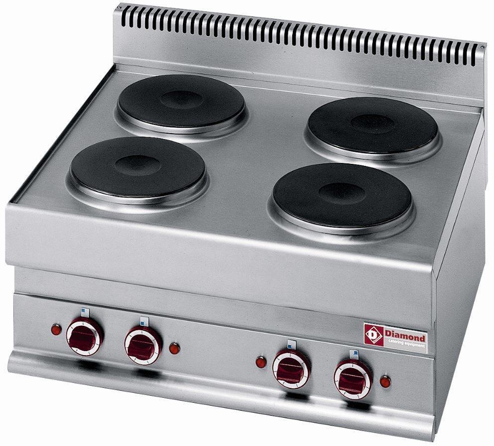 Cuisinière | Electrique | INOX | 2,6 kw | 4 Plaques | de Table | 400V