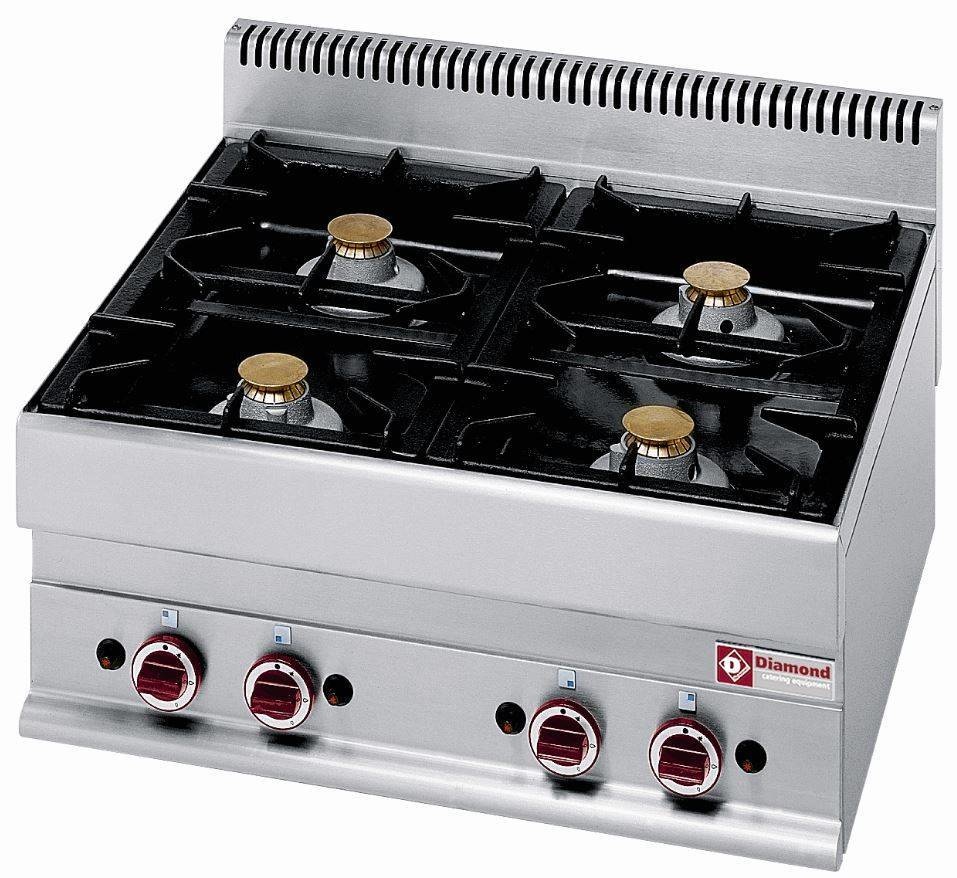 4 brûleurs (2x 3,6 kW et 2x de 5 kW).Réalisation en acier inox 18/10 AISI 304.