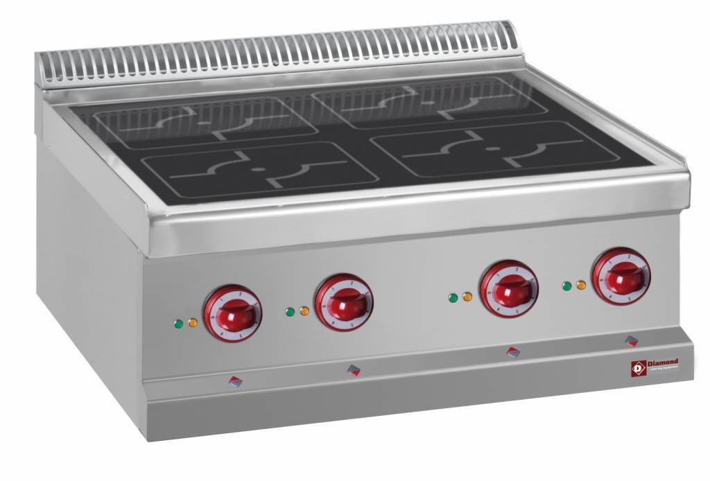 Cuisinière | INOX de Table | 4 Plaques à Induction | 220mm | 400V/14kW | 700x700x250/320(h)mm